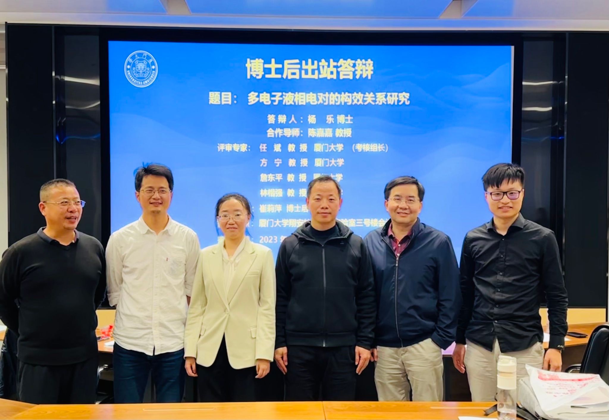 2023年3月13日下午,本课题组以线下会议方式开展了杨乐博士的出站报告答辦工作。厦门大学化学化工学院任斌教授、化学化工学院方宁教授、詹东平教授以及林楷强教授担任出站报告答辦专家组成员,专家组组长由任斌教授担任,答辦会由崔莉萍博士主持。