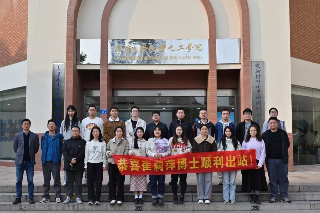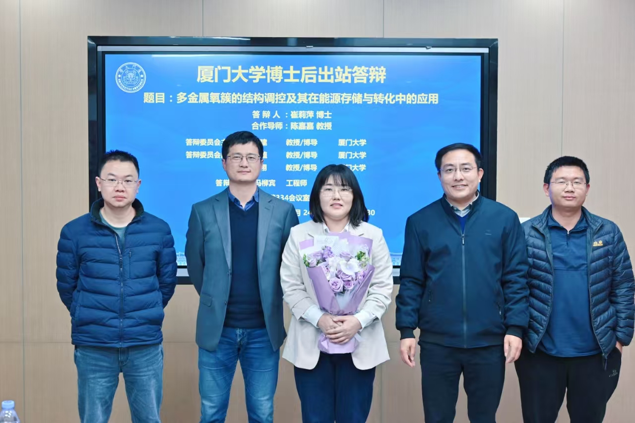 2025年2月24日下午,本课题组的崔莉萍博士在化学楼334会议室进行博后出站报告答辩。厦门大学孔祥建教授担任本次答辩会的主席、谭元植教授以及王翔教授担任出站报告答辩专家组成员。